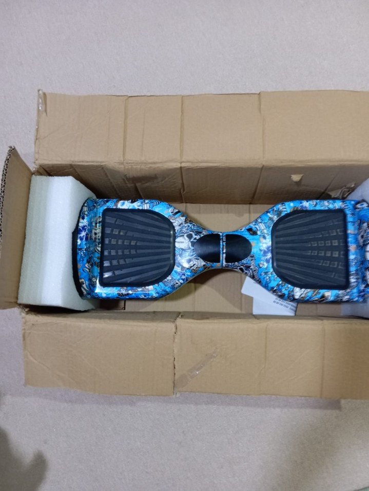 Bu koyu mavi çocuk scooterı, geniş ayak pedleriyle sağlam bir tasarıma sahiptir. Renkli desenlidir ve kutusunda güvenle paketlenmiştir.
