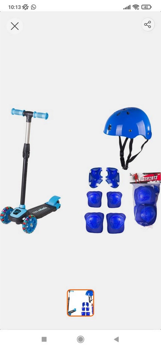 Mavi çocuk scooter'ı renkli tekerlekleriyle birlikte mavi kask ve koruyucu ped seti içerir. Hiç kullanılmamıştır. kutusu ile gönderilecektir. bebeğime hediye geldi ama bunun için çok küçük