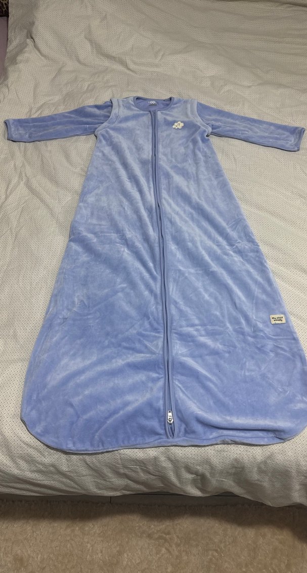 Pastel mavi renkte, uzun kollu ve önden fermuarlı çocuk uyku tulumu, yumuşak ve sıcak dokusuyla rahat uyku sağlar. Woody marka cok guzel kalıtelı sıfırdır kokusu ustunde :))