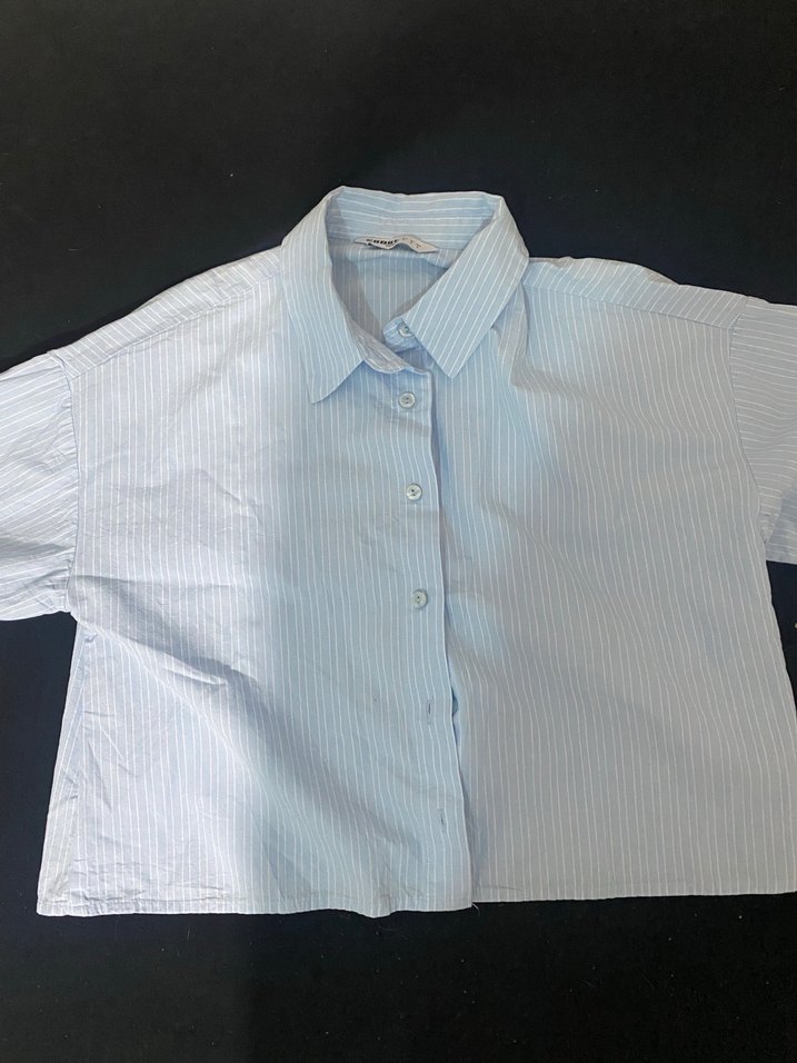 mavi crop gomlek