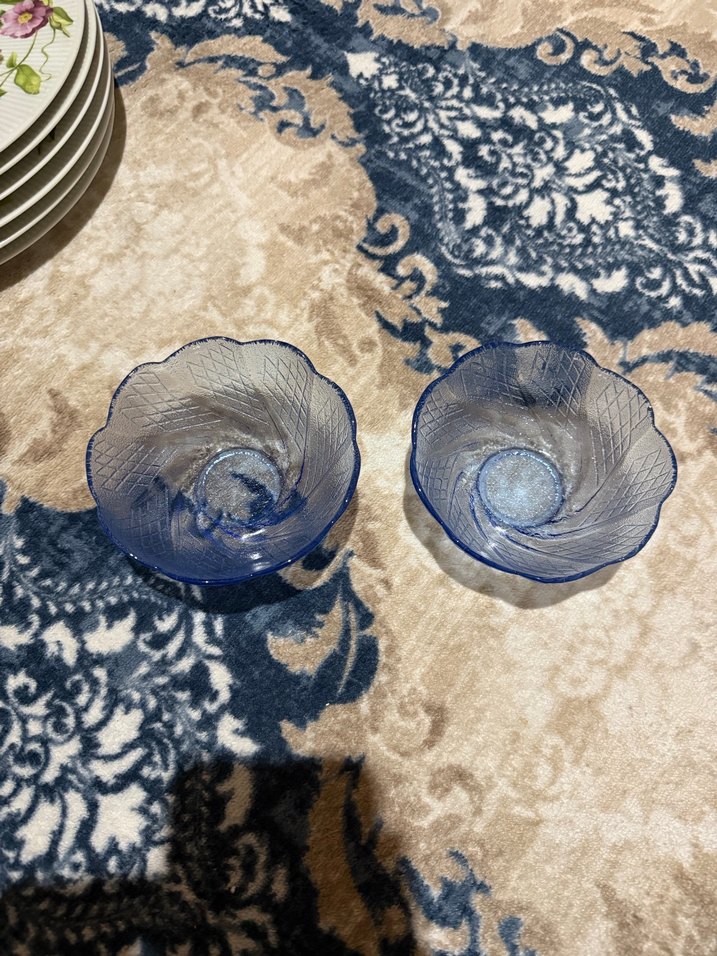 Mavi Dalgalı Desenli Cam Kase Seti ikili