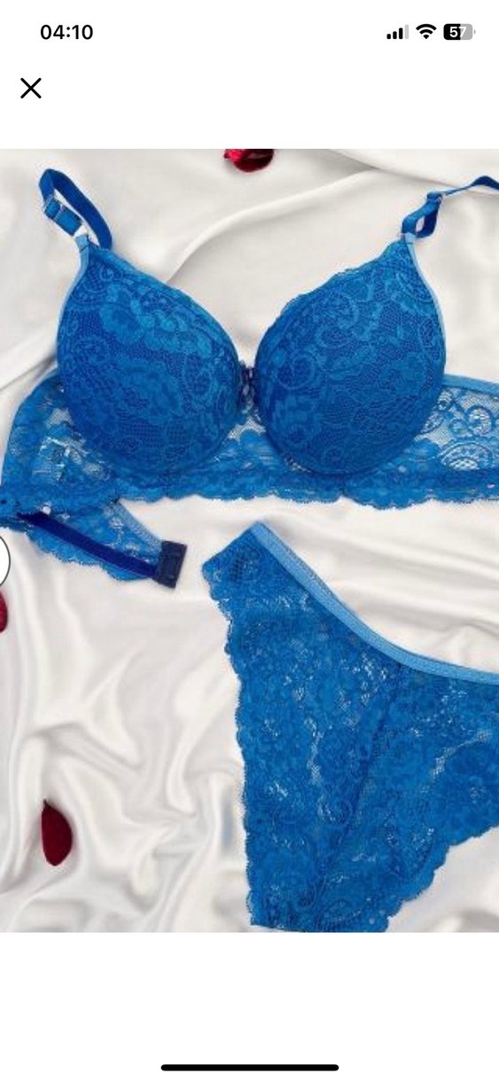 Mavi dantel sütyen ve külot takımı, bohem tarzda ve göz alıcı. Canlı renkli, desensiz tasarımıyla dikkat çekiyor. Bedenleri mevcuttur