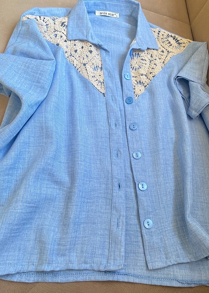 Mavi dantel detay gömlek