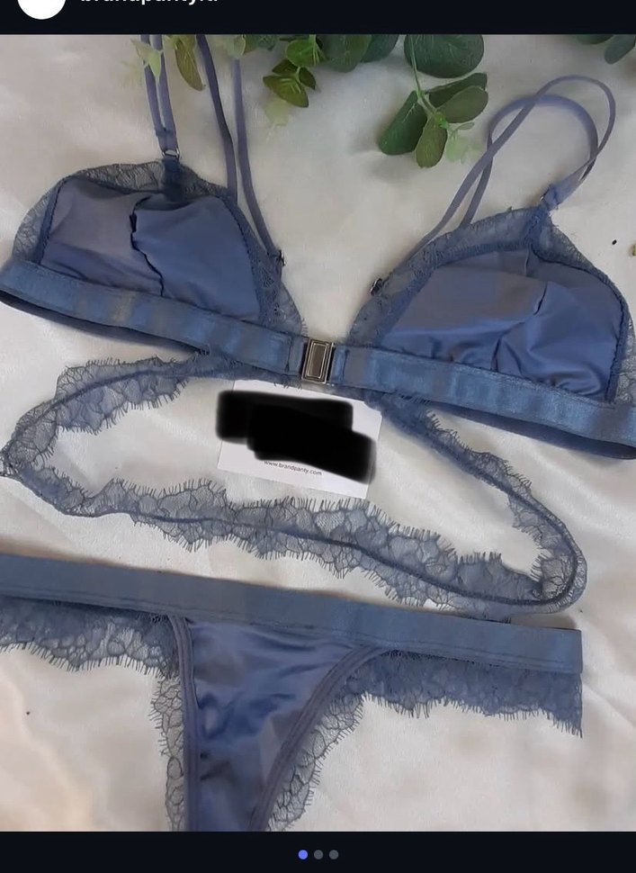 Mavi renkte, ince dantel detaylı ve ayarlanabilir askılı bohem tarzda bir bustiyer takım saten dantelli alt kısmı ile takım halinde.
