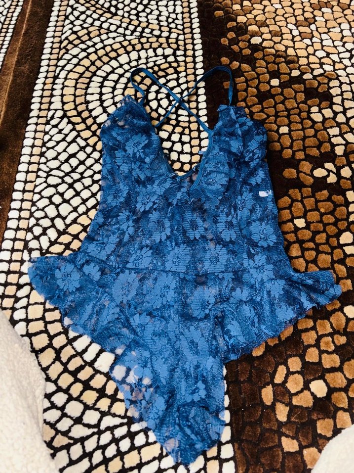 Dantel detaylı, mavi renkli, yılan desenli, askılı bohem tarzda, kısa ve vücuda oturan monokini, parti için uygun.