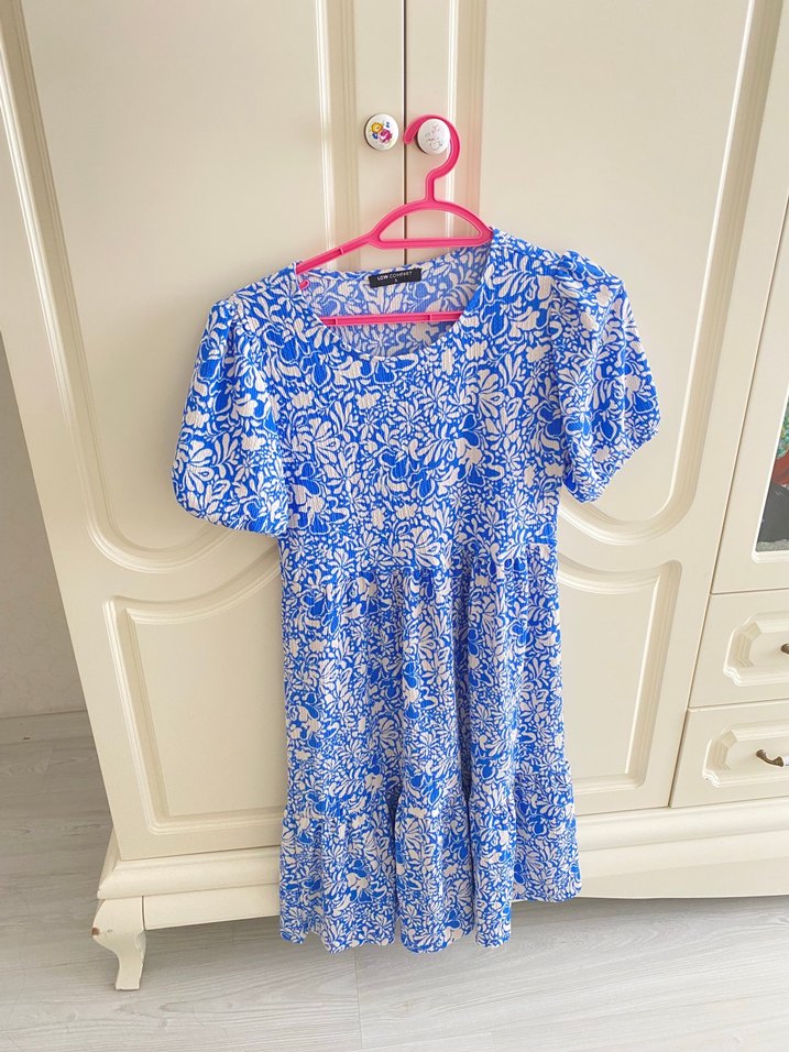 Mavi renkli, dantel detaylı bohem midi elbise. Pamuk kumaştan, kısa kollu, V yakalı ve bol kesimdir. Renkli batik deseniyle günlük kullanıma uygundur.