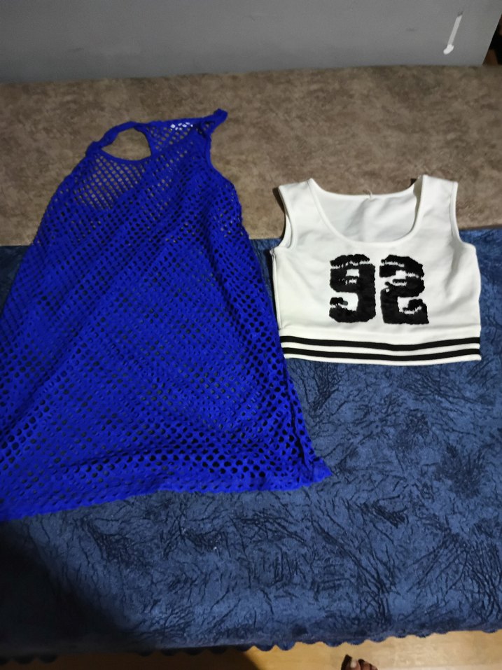 Mavi renkte, dantel detaylı, kısa ve askısız örme kumaştan üretilmiş salaş kesim bir atlet. Üzerinde renkli baskı ve "92" rakamı bulunmaktadır. s m uyumlu ikisinin fiyat i