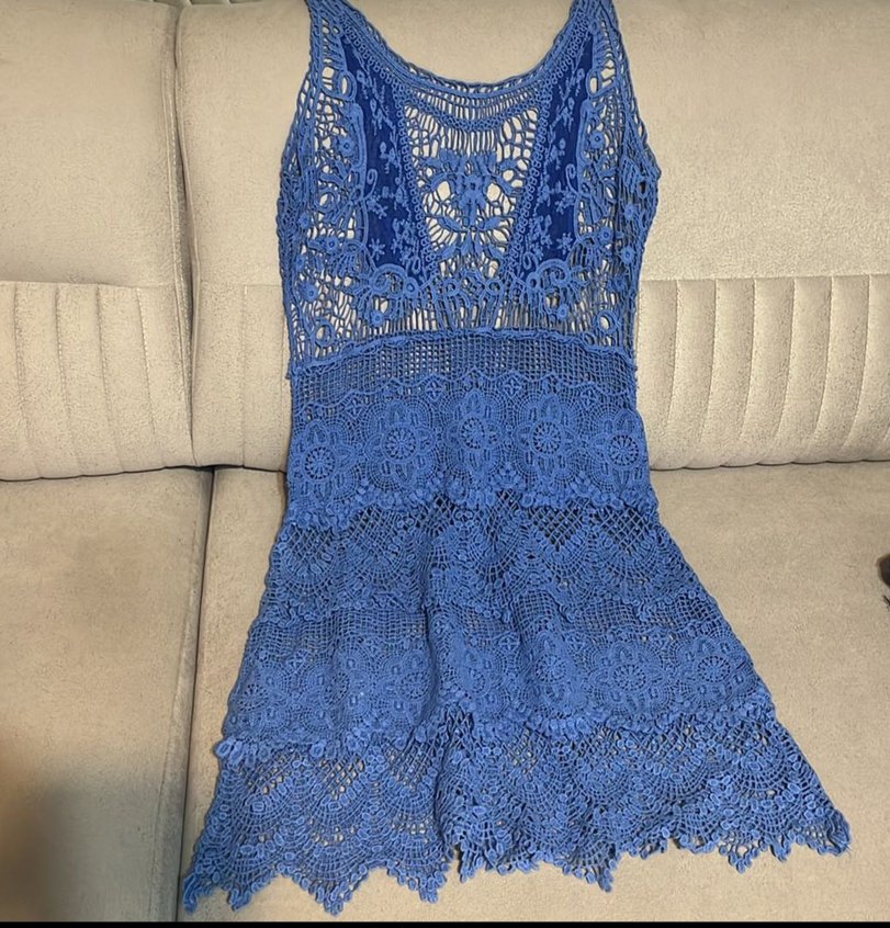Mavi Dantel Detaylı Kısa Dantel Elbise