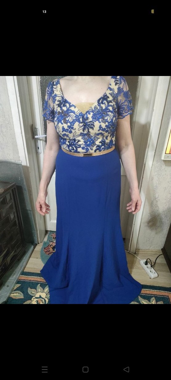 Mavi Dantel Detaylı Midi Abiye Elbise