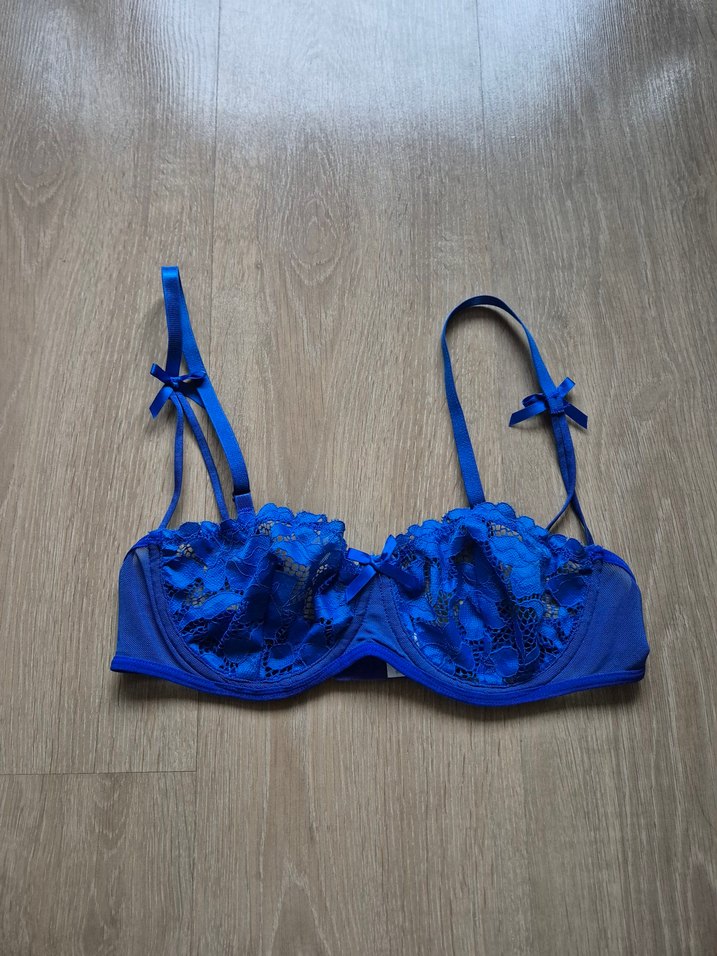 75 beden Bu koyu mavi sütyen, dantel detayları ve küçük fiyonklarla ayarlanabilir askılara sahiptir. Parisli karşı kültür stilini yansıtır, normal uzunlukta ve desensizdir. Saks Mavisi Balenli Dantelli