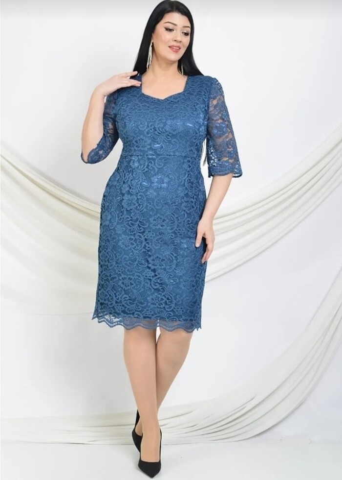 Mavi dantel elbise