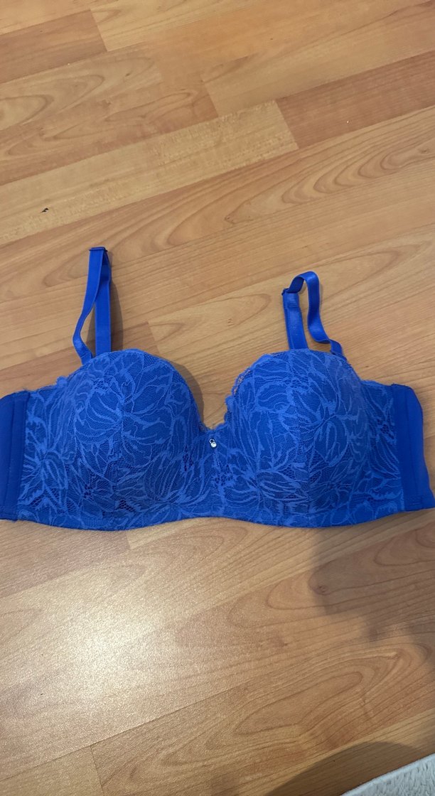 80 C Ayarlanabilir askılı, bohem tarzda mavi dantel sütyen. Minimalist tasarımlı ve canlı renklidir.
