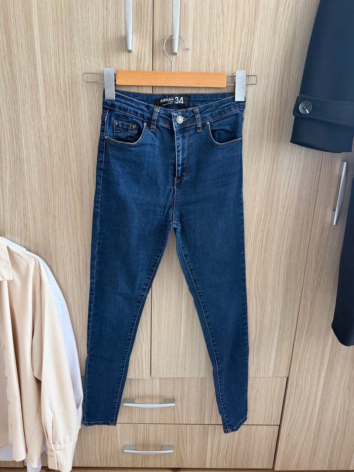 Mavi dar kesim midi kot pantolon, günlük kullanım için rahat ve şık bir sokak giyim tarzı sunar. Düz ve desensiz yapıya sahiptir.