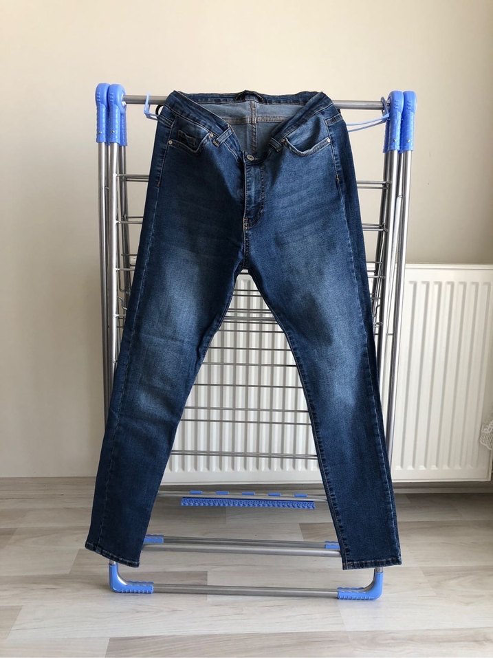 Mavi renkte, salaş kesim ve normal boyda kot pantolon. Desensiz tasarımıyla günlük rahat ve şık bir görünüm sunar.