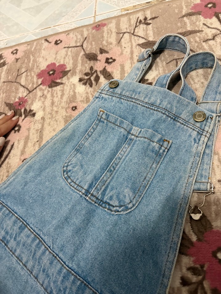 Ayarlanabilir tokalı askıları ve ön cebi olan mavi denim kısa tulum. Gevşek kesimi ve pastel batik deseniyle günlük rahat sokak stili sunar.ML BEDEN UYUNLU
