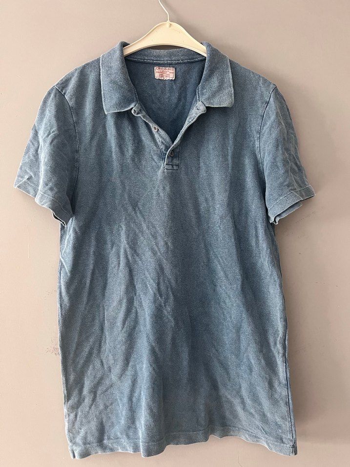 Mavi renkli, düğmeli detaylara sahip erkek denim polo tişört. Kısa kollu, yakalı ve bol kesimdir. Günlük kullanıma uygun, sade ve rahat bir modeldir.