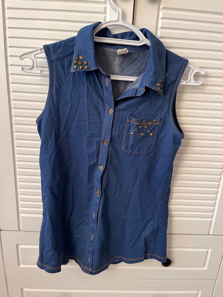 Mavi Denim Düğmeli Kolsuz Gömlek