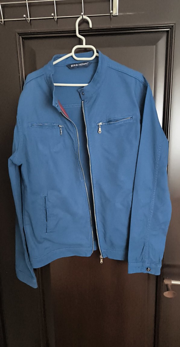 Parlak mavi renkte, fermuarlı ve normal boyda erkek denim ceketi. Uzun kollu, regular fit ve notched lapel yakalıdır. Günlük ve sokak stiline uygundur.