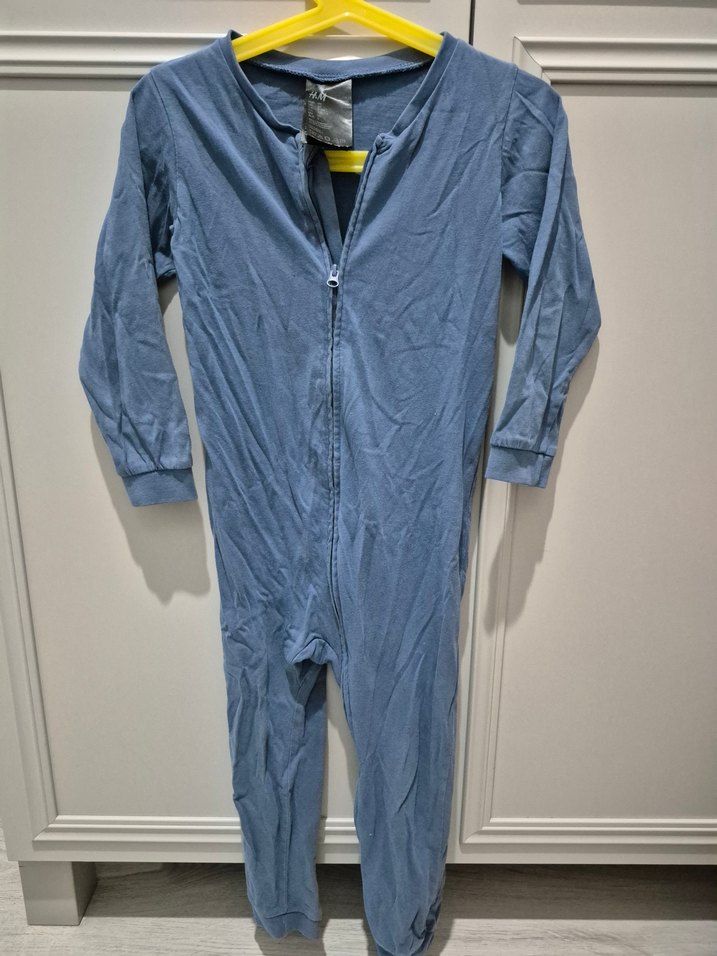 Uzun kollu, fermuarlı mavi-gri denim bebek tulumu. Notch yaka ve sade, sokak stili tasarımıyla rahat kullanılır.