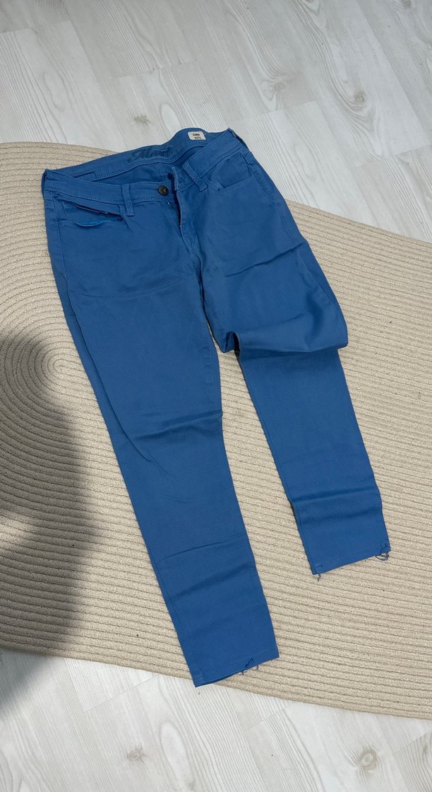 81 cm Parlak mavi renkte, normal boy midi kesim, rahat kalıp kadın denim pantolon. Günlük kullanıma uygun normcore tarzda, zahmetsiz şıklık sunar.
