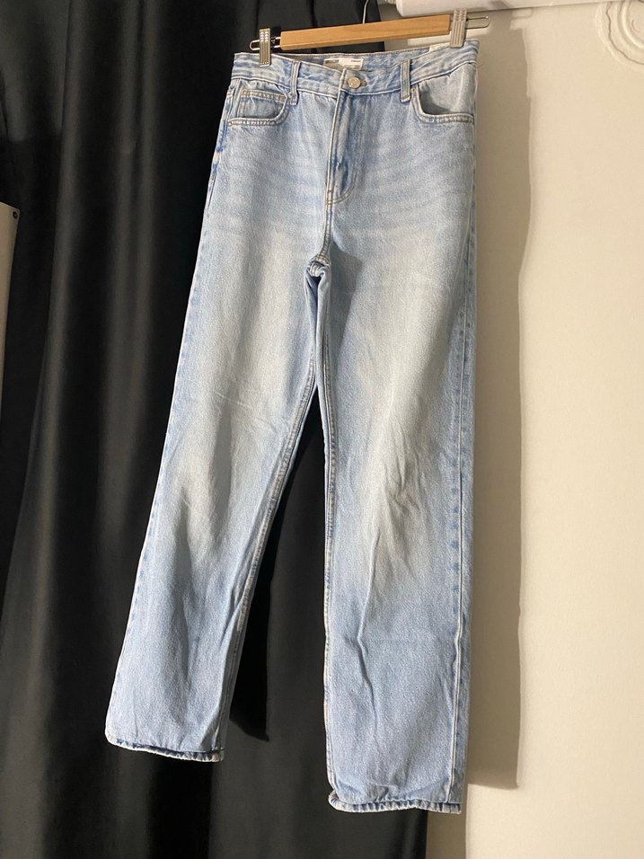 Mavi denimden, midi boy ve regular fit kesime sahip, desensiz günlük rahat kadın jean pantolon. Pastel tonu ile zahmetsiz şıklık sunar.