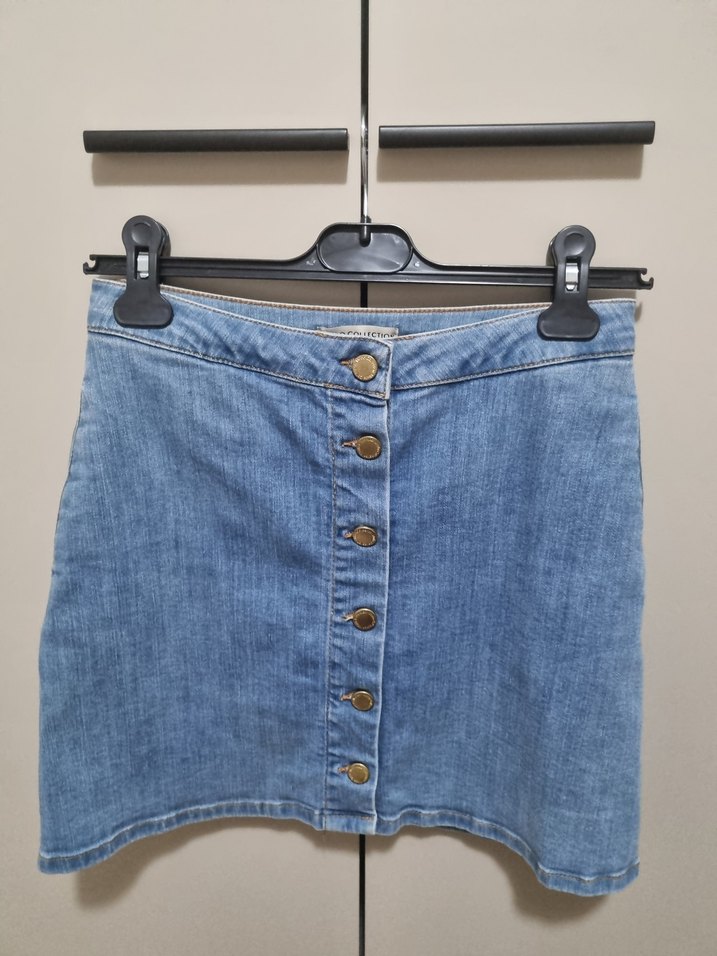 Mudo marka 34 beden yanları cepli ve önü düğmeli kısa kot etek.