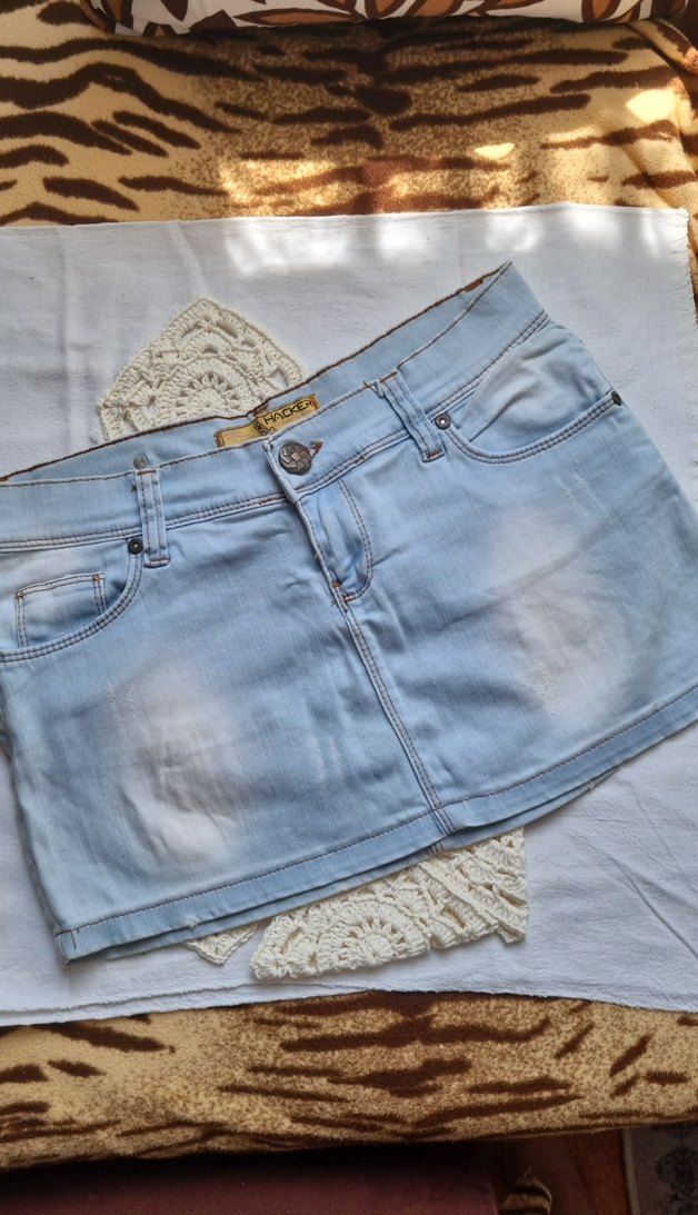 Mavi denim kumaştan, fitted kesim mini etek. Pastel tonu ve desen içermeyen tasarımıyla günlük kullanıma uygun, rahat ve şık bir görünüm sunar.