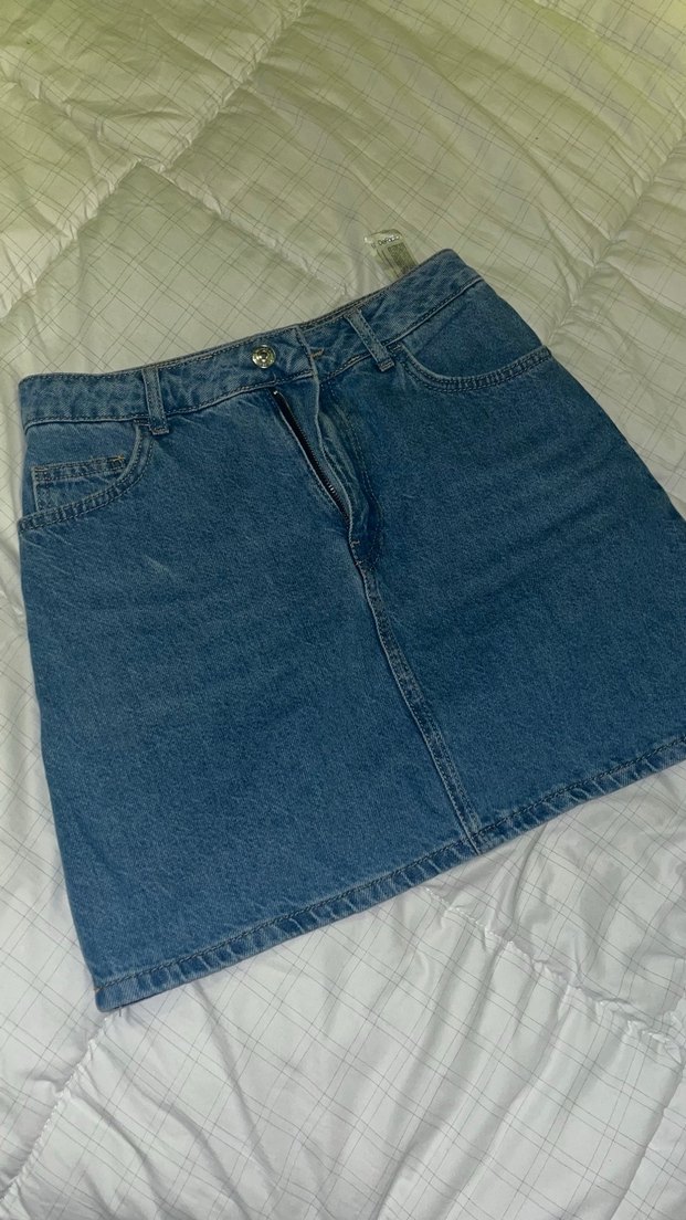 Mavi denim mini etek, rahat kesimi ve desen içermeyen sade tasarımıyla günlük kullanıma uygun, sokak stiline uyumlu rahat bir parça.