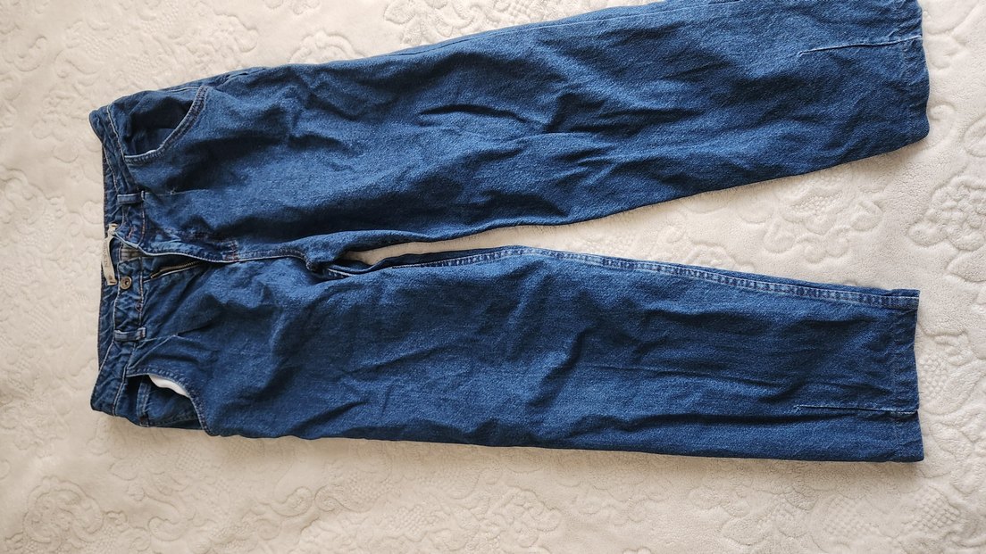 Mavi denim kumaştan, salaş kesim ve midi boyda, fermuarlı detaylı kadın jean. Günlük kullanıma uygun sade ve rahat tarzda.