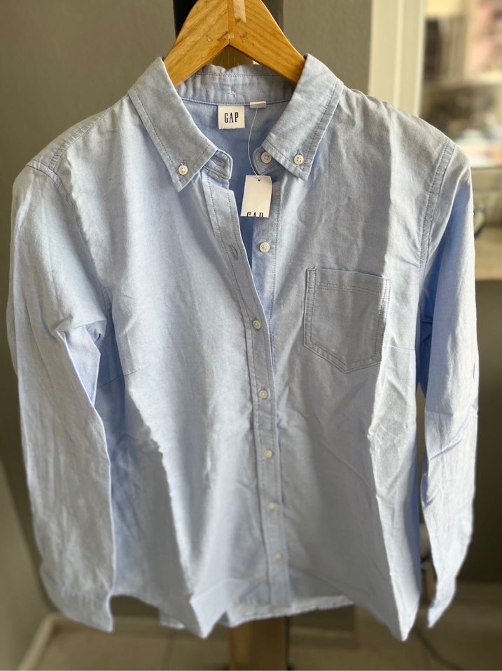 Mavi denim kumaştan, yakalı ve düğmeli, uzun kollu, rahat kesim kadın gömleği. Günlük sokak stili için uygundur.