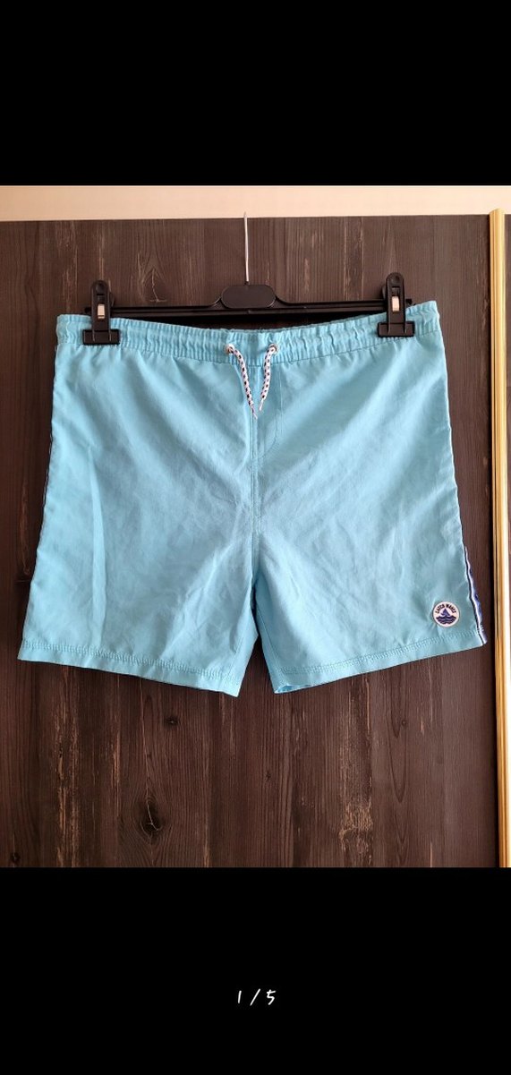 Mavi pastel renkli, kemerli ve dar kesim deniz şortu. Düz ve desen içermeyen rahat yapısıyla plaj ve sokak stiline uygundur. Defosu vardır.