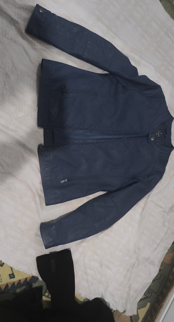 Mavi Deri Ceket, Normal Boy, Fermuarlı - Görsel 1