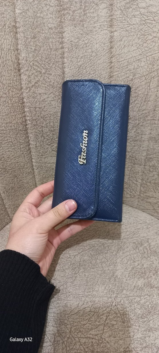 Mavi deri fermuarlı kadın cüzdanı, parlak baskılı yüzeyiyle trendy ve günlük sokak stili için uygundur.