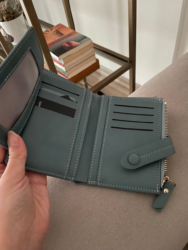Mavi Deri Fermuarlı Kadın Cüzdanı
