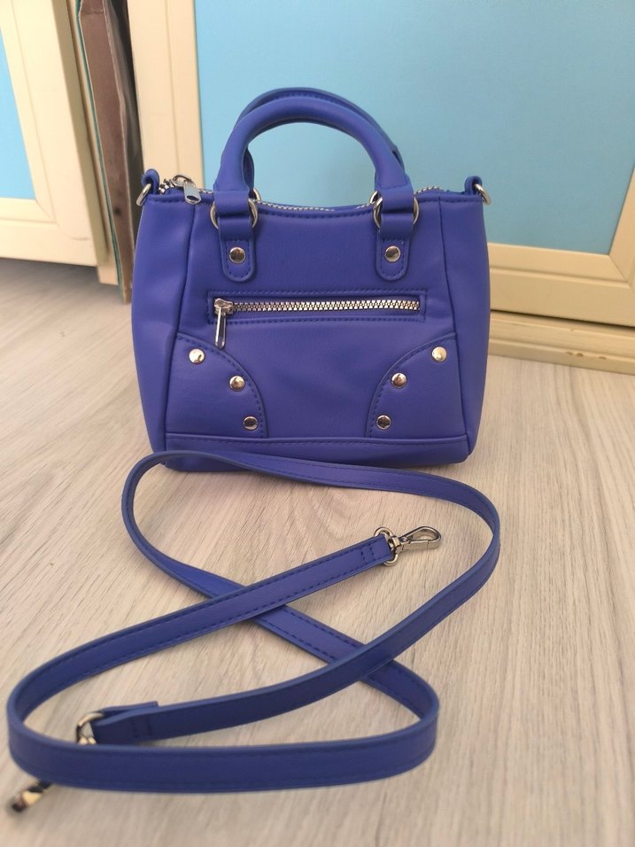 Mavi deriden yapılmış, tokalı detaylı ve çıkarılabilir askılı kadın çantası. Minimalist ve trend günlük stil için uygundur.