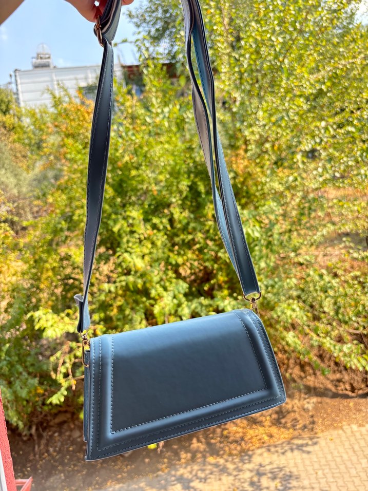 Mavi deri, kemerli tasarıma sahip kadın çantası. Düz ve desen içermeyen modeliyle sokak stili ve açık hava kullanımı için uygundur. fiyat konusunda yardımcı olurum marka zara değil