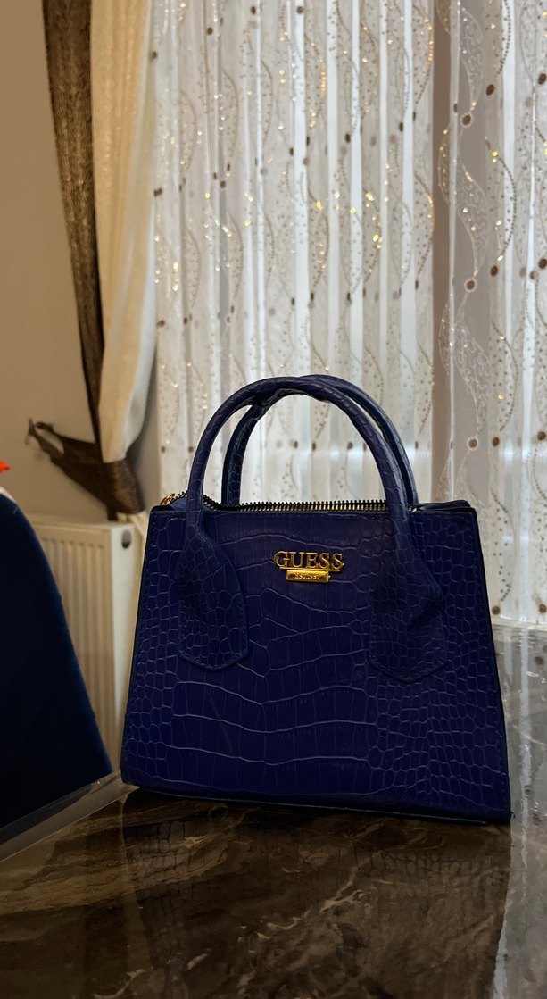 Parlak yılan derisi desenli mavi deri kadın çanta, tokalı detaylar ve klasik şıklığı sokak modasıyla buluşturuyor.