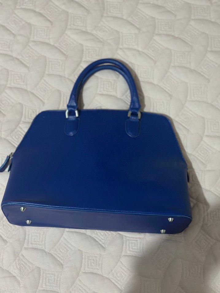 Parlak mavi deri büyük kol çantası birkaç kez kullanılmıştır görselde görüldüğü gibidir kusuru yoktur