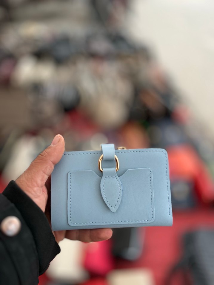 Mavi Deri Kadın Cüzdanı Tokalı