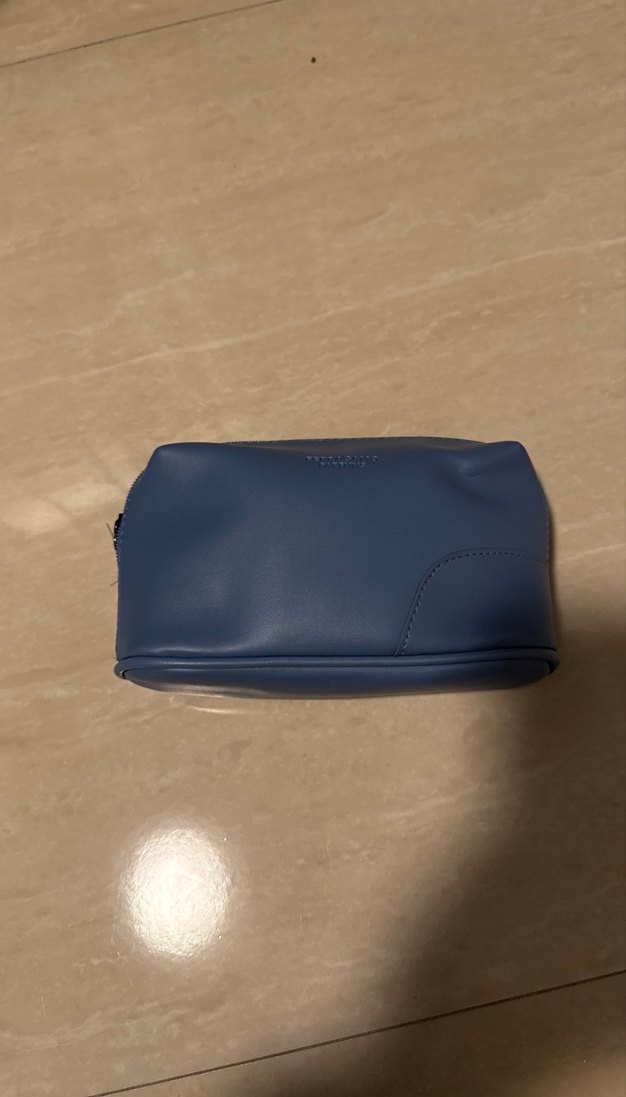 Mavi deri kadın makyaj çantası, fermuarlı kapama ve minimal desensiz tasarıma sahiptir. Günlük kullanım için uygundur, streetwear tarzındadır. Hiç kullanılmadı 3. Fotoğrafta kilidi görünüyor