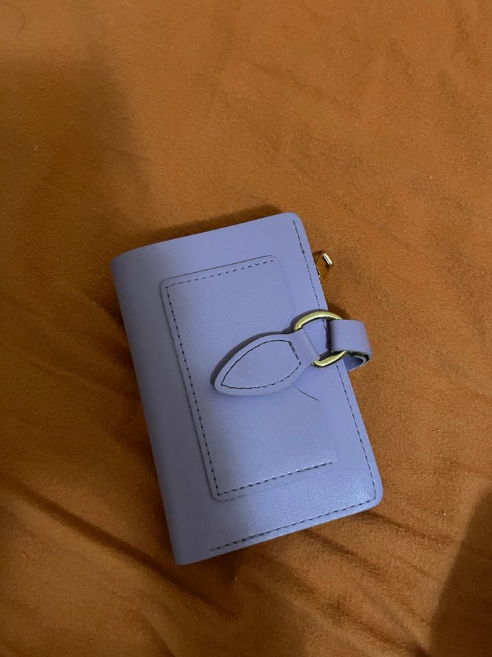 Pastel mavi renkte, tokalı kapamalı, günlük kullanıma uygun minimal ve bohem tarzda deri kadın cüzdanı.
