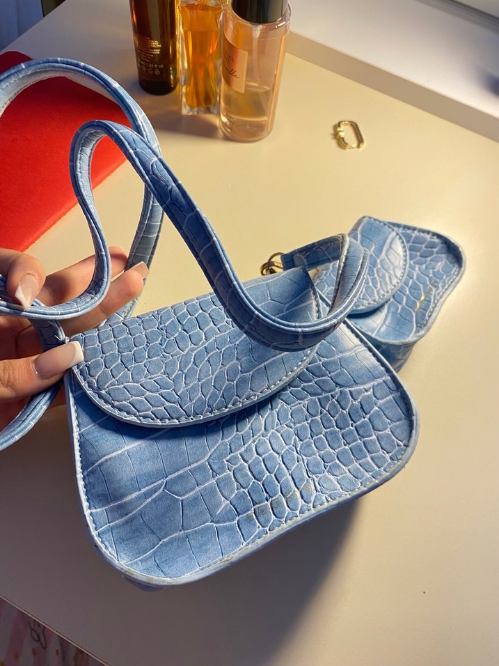 Mavi Deri Yılan Desenli Kadın Omuz Çantası