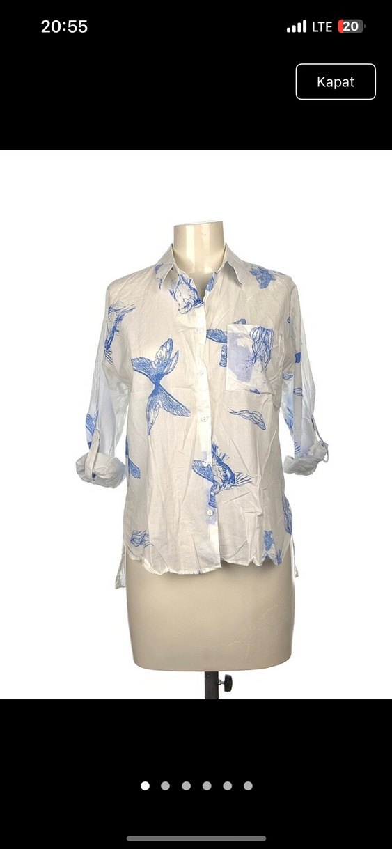 Bağlama detaylı, uzun kollu, pamuklu gömlek. Açık mavi bağlama deseni ve yakalı tasarımıyla rahat bir görünüm sunar.