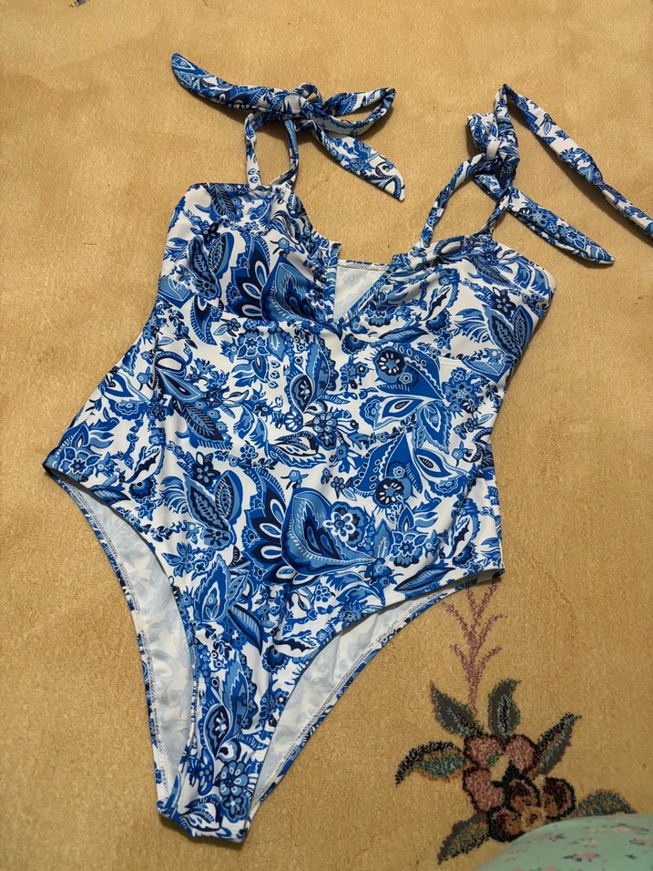 baglamalı askılı mavi desenli mayo