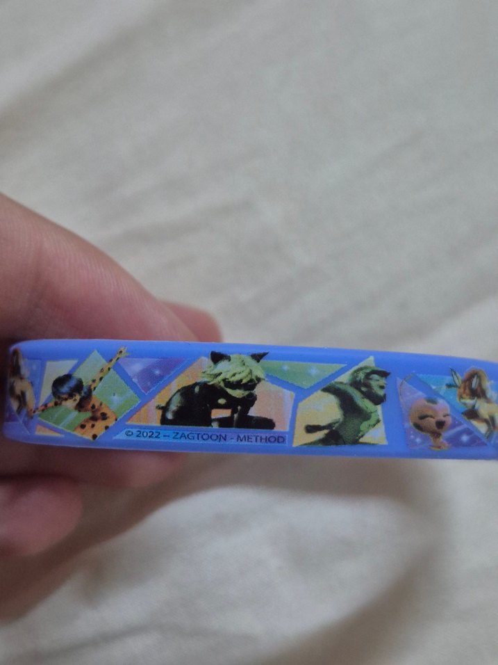 Mavi renkte, çeşitli karakter desenleri bulunan esnek yapıda akıllı bileklik. Teknoloji ve eğlenceli tasarım bir arada.