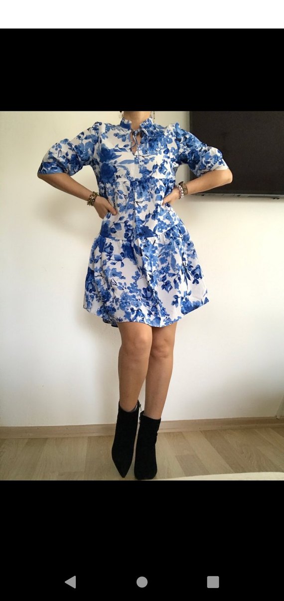 Mavi Desenli Bol Kesim Elbise