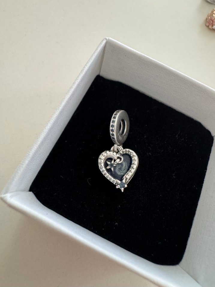 Mavi desenli kalp figürlü, boncuk detaylı kadın charm. Romantik akşamlar için klasik ve gotik Paris tarzı aksesuar. Hiçbir sorunu yok.
