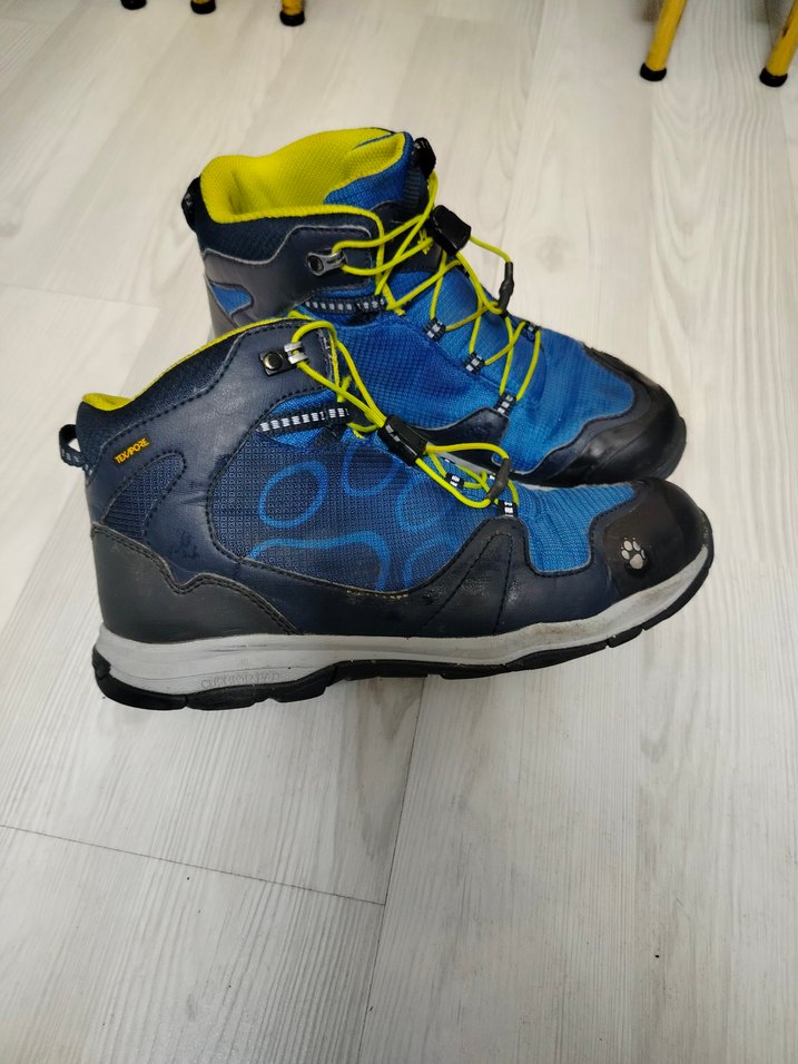 Mavi renkli, kauçuk malzemeden yapılmış, renkli desenlere sahip erkek çocuk botları. Velcro ve bağcıklarla kolay kullanım sağlar. Trendy casual tarzda.