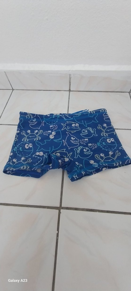 Mavi renkli, deniz canlıları desenli erkek çocuk mayo şortu. Rahat ve hızlı kuruyan kumaştan üretilmiştir.