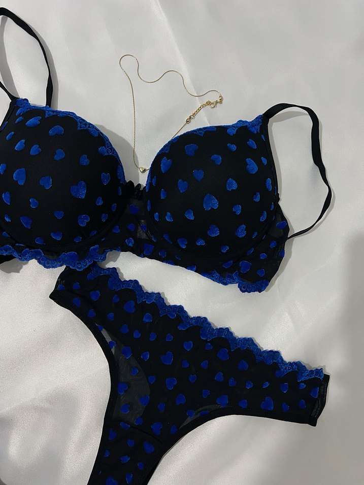 Mavi kalp desenli ve dantel detaylı gotik stil sütyen. Ürün dolguludur. 80-85-90 bedenleri mevcuttur. Hijyen nedeniyle iade kabul edilmemektedir. Ürün sıfırdır. Desenleri kadifedir.